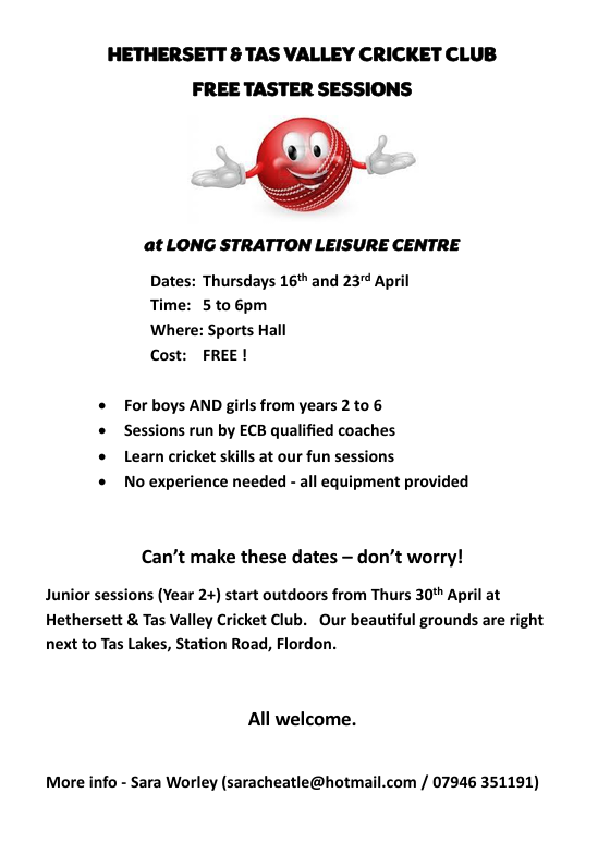Junior Cricket Sessions at Long Stratton Leisure Centre