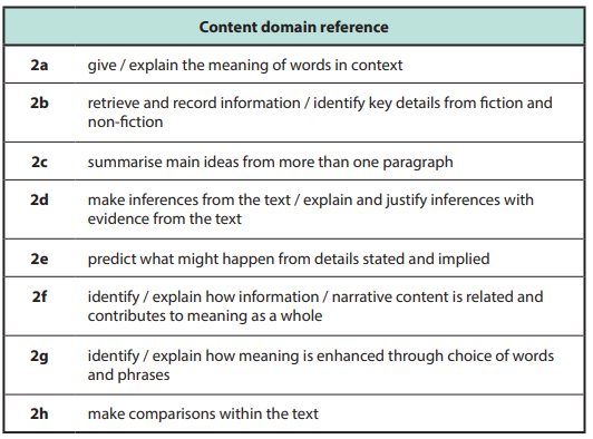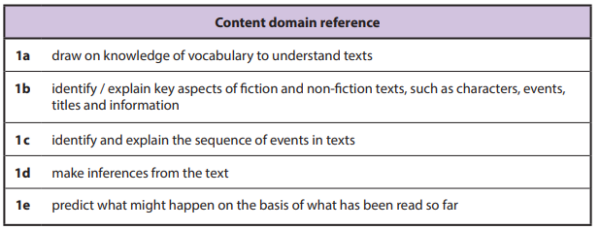 During a typical whole class guided reading session the teacher will share what the content domain/s the children will be focusing on for that session.